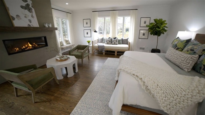 Whether she's working with a half renovated room that is still down to the studs or a tiny, closet-sized room that needs to be opened up, these bedrooms showcase how well she can reimagine a space for frustrated homeowners. Some of these rooms required construction magic to make them more useable, while others just needed an experienced designer to rearrange the furniture. Both are equally amazing at how radically the room changed. Below are some of Farr's best primary bedroom makeovers in both series.