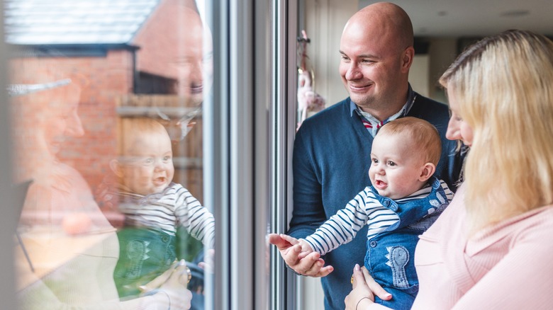 While they may not look aesthetically pleasing, installing window guard bars is another way to prevent babies from hurting themselves on or through windows. Stick padding around windowsills to cover hard edges and soften falls. To prevent babies from trying to open windows, unscrew cranks from window handles and keep them away from babies. You can always reattach them later. Parents can make it a rule to play at least two feet away from windows (via Seattle Children's Hospital). If parents visit a home that's not childproofed, they can try to ensure the windows are closed and locked while keeping a close eye on their child. This Sliding Door Lock on Amazon will work nicely at home.