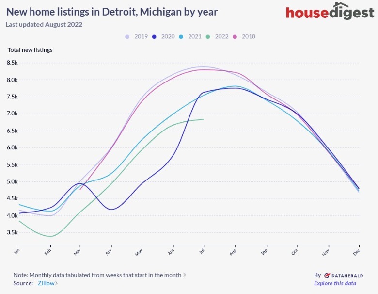Detroit's market is still sluggish, with the number of new listings in 2022 still lower on average when compared to the same period in previous years. But as experts have pointed out in other markets, it's possible things could once again heat up.