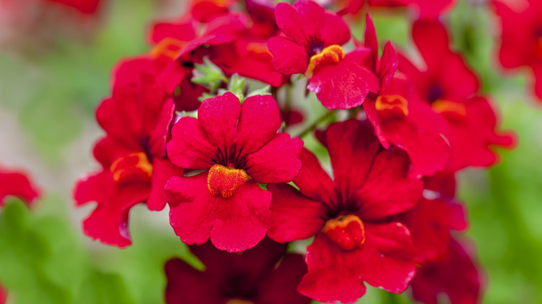 Nemesia (Nemesia strumosa) is a favorite for summer garden beds. In addition to the gorgeous red color, nemesia also comes in various other hues as well, even bi-colors. Rainy Side notes that this flower needs additional calcium and magnesium for the best blooms. If you want nemesia to last longer, you'll want to deadhead them. Benefitting from a long bloom season, you can enjoy these flowers for quite awhile.