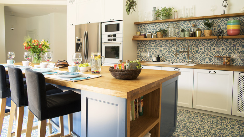 Patterns are a great way to be bold and eclectic. Swap out your plain floor tiles and backsplash for a bold pattern. You can even go a step farther and include them throughout your kitchen.