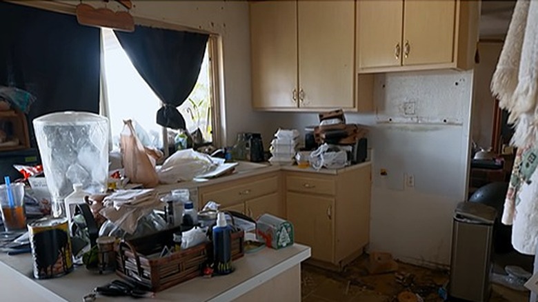 Abandoned mess with yellow cabinets