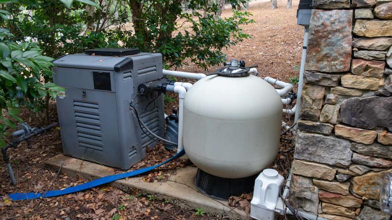 Ideally, your pool should be in the 7.2 to 7.8 pH level range. You can get digital meters that tell you the pH level in your pool water. If it's too low, consider shocking it, which involves adding chlorine and will raise the pH level and remove any contaminants from the water, via Hayward. Another chemical component you want to pay attention to is alkalinity. For gunite pools, this should be around 80 to 120 parts per million, and for vinyl, 120 to 170. Again, there are strips and digital meters for testing this. You can raise alkalinity with sodium bicarbonate, per WaterGuru.