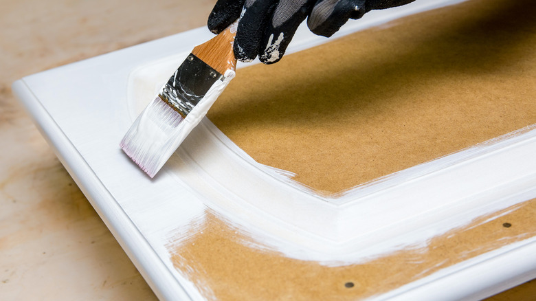 As you spend hours preparing the cabinets and then even more hours applying the primer, you'll probably be pretty sick and tired of this DIY project. If you haven't skipped any steps by now, you're probably considering it at this point. To avoid having to paint so many layers on the cabinets, sometimes homeowners will try to apply a thicker coat (via Premier Cabinet Painting). However, this is a bad idea. Thicker paint areas won't dry smoothly, making the furniture look bumpy. It's also more likely to leave behind bubbles that can dry and create holes in the finish, which will then need to be sanded and redone. So don't make it more difficult for yourself, and be sure to apply a thin layer of paint each time.
