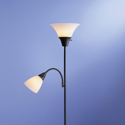One of Target's most popular models is a torchiere and task light floor lamp. Available in either black or silver, this model costs only $15. However, for $7 more, you can include the required LED bulbs. It must be noted that the torchiere light bulb cannot exceed 150 watts while the task light must not exceed 40 watts. In addition, the torchiere light has a three-way rotary switch while the task light contains a one-way rotary switch. The base and the shade itself are both plastic while the flexible neck is made of metal. Peaking at 71 inches in height, this model also houses a 60-inch-long power cord. A warranty is not available when purchasing.