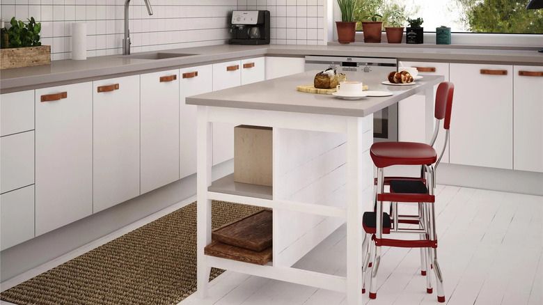 Plastic stools are usually either non-folding versions that sit out all the time or small, one-step affairs that fold to the size of a large children's picture book (via Lowes). Metal step stools (usually steel or aluminum), on the other hand, are almost always folding stools, save for a few heavy-duty industrial models and some medical models. Fiberglass step stools almost always look like little fiberglass step ladders and are somewhat safer for electrical work while also being less prone to damage than metal ones (via Home Depot). Step stools made of wood tend to be smaller (1-2 steps) and more decorative.