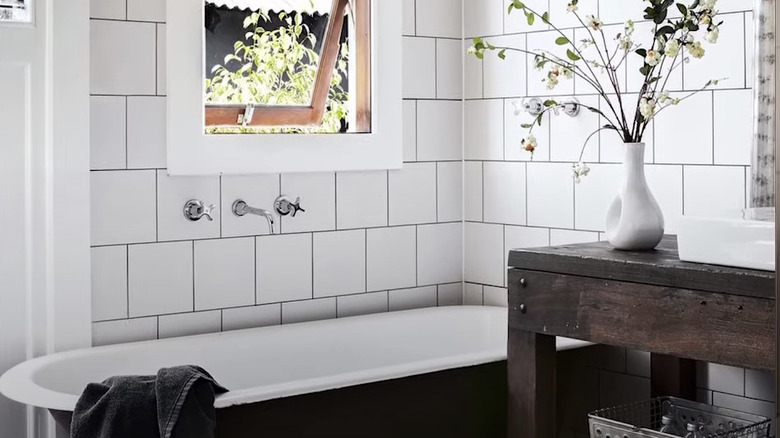 Do you love having a bath but fear your bathroom is a little too small to incorporate a tub? According to QS Supplies, 44 out of 50 American states prefer having a bath rather than a shower, so if you do have a small space, making sure to fit a bath in will no doubt be an important consideration. There are lots of options to ensure you don't have to forgo your beloved bath time, and according to MasterClass, there are eight different types of bathtubs you can review. Unfortunately, some tubs are unsuitable for small bathrooms, but thankfully some, such as the soaking bathtub and the walk-in bathtub, would be perfect for small square footage.