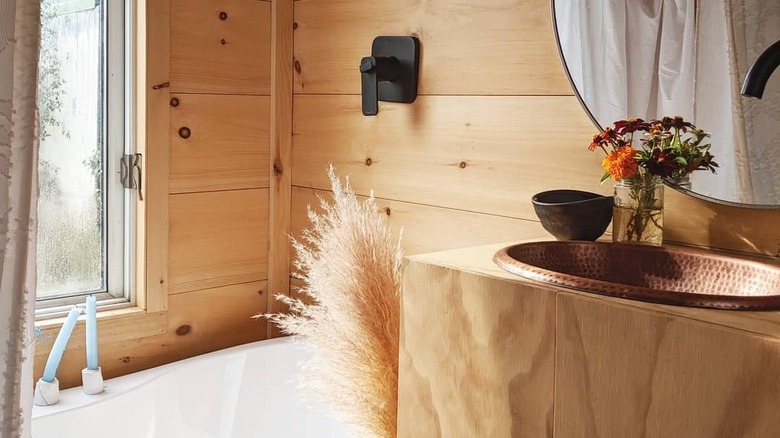 Housing prices have sky-rocketed due in part to inflation and because more people have sought the comfort and security of home ownership. But that means there are fewer properties available than ever, so first-time home buyers have to get creative. Enter the tiny house movement. Tiny houses appeal to a staggering number of first-time homeowners due to their affordability and eco-friendliness, says Business Insider. But a lot of people have a knee-jerk reaction to these small buildings, wondering how anyone could live happily and comfortably in so little square footage (the average tiny house is just 225 square feet per Porch), especially when it comes to the bathroom. We're here to say it can be done and can be done in style!