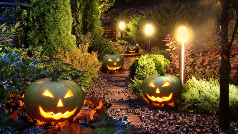 If placed on either side of your walkway, green jack-o-lanterns could be used to welcome your guests to your home.