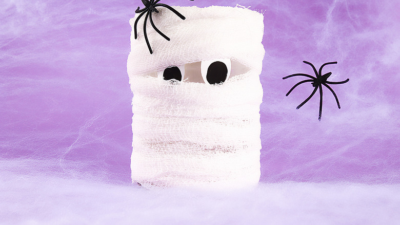 Another creature to focus on when decorating for Halloween this year is a mummy. You could create cute mummy decorations out of eye cutouts and gauze.