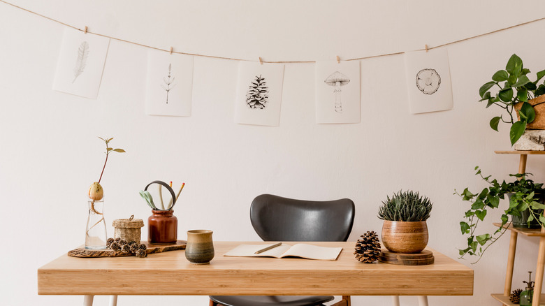 If you'd like to have pretty plants in your home office but aren't exactly great at keeping them alive and healthy, then you might want to opt to create your own pressed flower art. Just grab a few of your favorite blooms before both drying and flattening them, then place them in a glass frame.