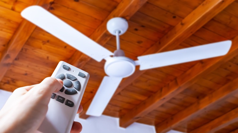 When it comes to choosing a ceiling fan, like anything else, there are many factors to consider. According to Kichler, one of the most important determinations is where your ceiling fan is going to go. While installing this gadget indoors within any room is fine, placing it outdoors comes with a few extra risks such as exposure to sunlight or rain. Therefore, you'll likely need a wet-rated model to ensure it's protected from these elements. On the other hand, if it's outdoors but in a protected area like a porch or a shed, you can probably get by with a damp-rated model.