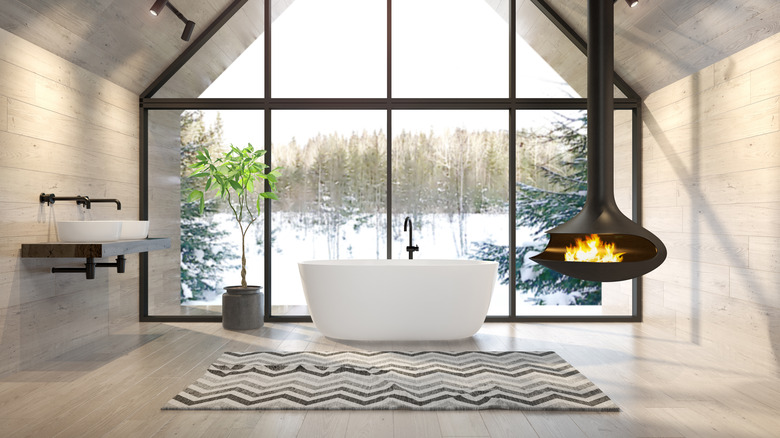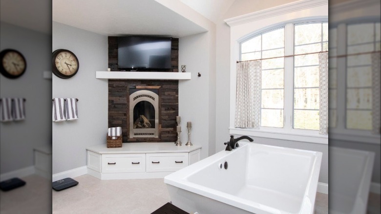 There are three different types of fireplaces you can install: gas, electric, and wood. According to Quality Overhead Door, having a fireplace in your home can increase its resale value. The type affects how much the resale value will rise, but overall, there can be a $1,000 to $5,000 increase. Quality Overhead Door claims that adding a gas and wood fireplace will boost the cost because they're more expensive to insert. While an electric fireplace might not escalate the price as much because it's more affordable, it'll break even. Whether you're looking to sell your home in the future or elevate the bathroom style, fireplaces are a perfect addition to any space. Check out these gorgeous bathrooms for some inspiration.