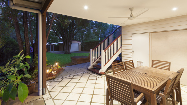 Wicker furniture is both stylish and durable. Of course, that's not the only reason to use it on your lanai. It can also withstand the weather and can be left outdoors when not in use. It comes in a wide range of options as well, like the light gray chairs with cushions and glass-top table seen here.