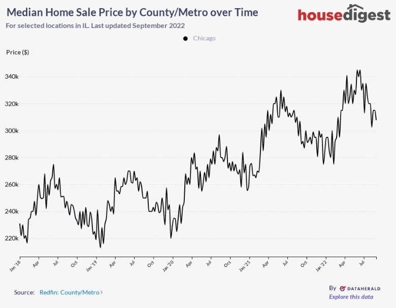 Mortgage rates are at an all-time high. As of right now, a 30-year-fixed-mortgage rate is around 5.4%, so even if you were to purchase a home at a low for-sale price, you're going to be making up for it in interest. For example, say you purchase a $200,000 home in Chicago, you'll end up paying another $23,000 by the end of those 30 years. With that said, as 2023 rolls in and Chicago housing prices go down, be sure to keep your eye on the mortgage rates before you buy.