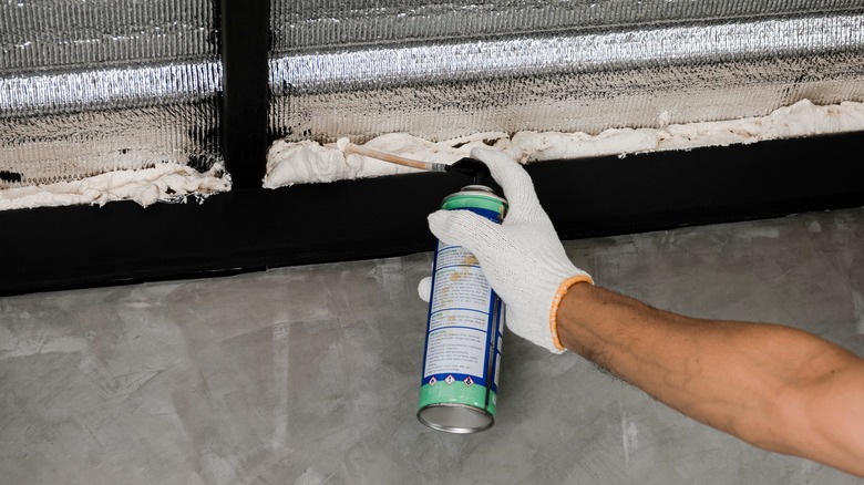 Home Depot recommends using an expandable foam caulk if you're dealing with an influx of bugs, damping sound, or have other insulation needs. These polyurethane-based caulks have a long, straw-like applicator that easily snakes into a gap and fills it with the expanding foam. It can also be used to repair small cracks in home foundations, though it isn't a cure-all for a crumbling foundation.