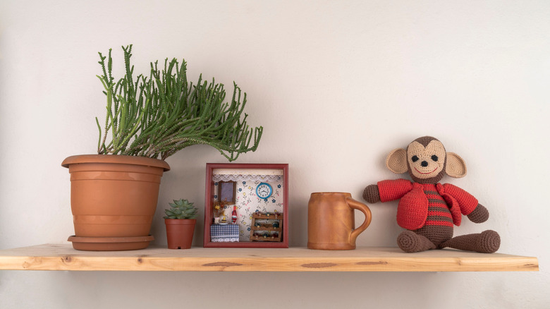 To embrace cluttercore, look no further than your attic. Bring out those items you stowed away simply because they didn't match, or head to your local vintage or thrift store to pick up a few pieces that make your heart happy. Your personality should shine through in your home's aesthetic, so look for items that speak to who you are and what you love, via Kelly Elko. If you're not ready to fully commit to the randomized mix of typical cluttercore, look for pieces with a similar color scheme or vibe. It doesn't have to be perfect, but consistency throughout can bring a bit of order to the chaos.