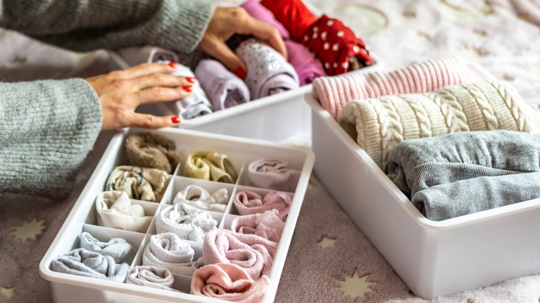 The swap, however, might be the easy part. The question is how do you store your out-of-season clothes until they're ready to be worn again? Winter clothes are notoriously hard to store due to their bulky nature. But Kirsten Fisher, certified professional organizer and founder of Imagine Home Organization has some solutions to make storage much easier. In an exclusive interview with House Digest, Fisher explains the best method of folding and storing your winter clothes over the summer months.