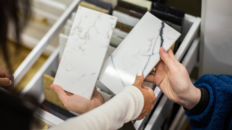 Contrary to popular belief, however, marble isn't actually very hard in the grand scheme of rocks. Its main component, calcite, only comes in at a 3 on the Mohs hardness scale, meaning it can still be scratched by metal, explains ThoughtCo. This comes in handy when you need to cut a massive slab of marble down to size, but because of this, it's not the best choice for a damage-free cutting board. Instead, keep it on the walls. It's a good option for a backsplash that won't crack under pressure like some other materials.