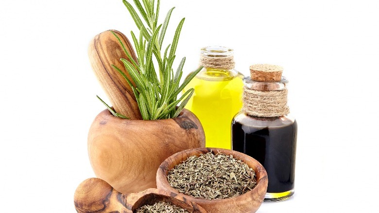 Additionally, according to Intrepid Mental Wellness, there are multiple benefits of the rosemary plant in addition to its delightful culinary offerings. The oil derived from the plant is touted for relieving common stomach problems and easing pain and inflammation. The aroma of the oil can help relieve stress and anxiety, improve memory and alertness, and improve respiratory issues. Furthermore, rosemary essential oil is good for your skin and has antimicrobial qualities.