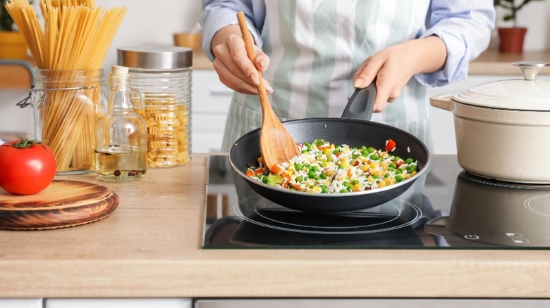 When making complicated or complex dishes like caramel or steaming rice, you might need to lower the temperature of the burner quickly for the best results. Unfortunately, electric burners don't cool down very fast either (via Tasting Table). The only way to expedite transitioning between temperatures is to use two burners at the same time. One must be at the highest setting and the other preheated at the cooler temperature. Once your pan is ready for the lower heat, you can move it from the hotter burner to the lower one.
