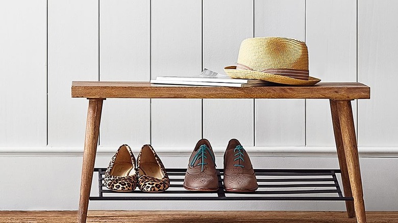 This combined bench and shoe rack from Pottery Barn ($199) is great for small spaces with its dual function. Whether it's stashing your shoes or those of guests, it does so fashionably and compactly.