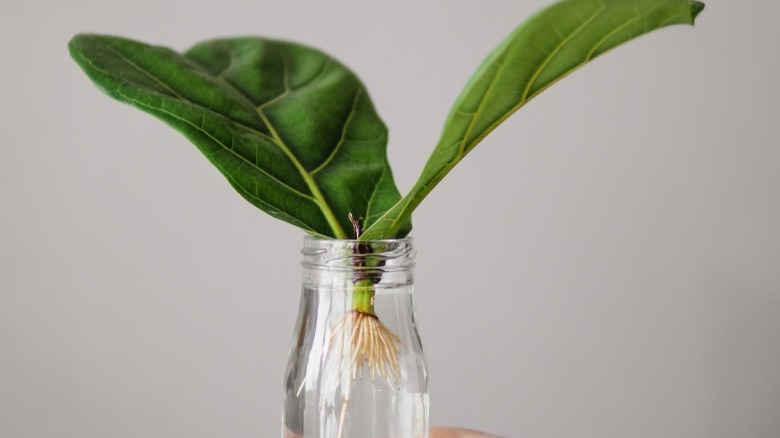 We see the fiddle leaf fig (Ficus lyrata) grown indoors so often that it's easy to forget that it's actually a tropical plant that loves warm and wet conditions. As touched on by Agriculture and Natural Resources, University of California, this fig species can be propagated from 6-inch stem cuttings and placed in water to allow roots to grow. Once you begin growing your plant, don't place it near a heating source. Here it will suffer from low humidity.