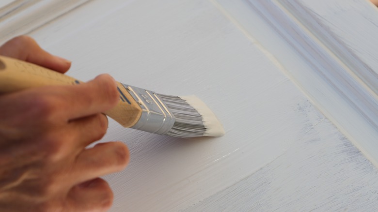 Cleaning your painted kitchen cabinets is just one of the many important things you can do to keep them well-maintained. According to Angi, you should also take measures to protect your cabinets from water, heat, and sun damage. Moisture could discolor the wood or result in mold or mildew growth. Using cabinet liners, only putting dry dishes away, and running the exhaust fan to absorb moisture from hot pots can all help to protect the cabinets and their painted finish. Too much direct sun may also pose a threat. To prevent the paint from fading, invest in some blinds or curtains for your kitchen windows.