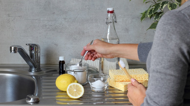 Per Live Science, there's a chemical reason why baking soda and vinegar are such effective cleaning agents: Baking soda is a base, which has the power to dissolve material like dirt and grease, while vinegar, which is an acid, can cut through the mineral buildup caused by hard tap water. This said, some sites today are questioning the use of this mixture to fix at least one common household problem: the clogged sink.