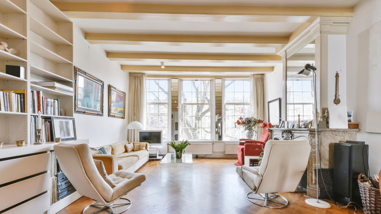 While there are benefits to arranging the beams vertically, a horizontal orientation will help you create the illusion that your room is larger than it is. This hack is handy if you live in a smaller house.