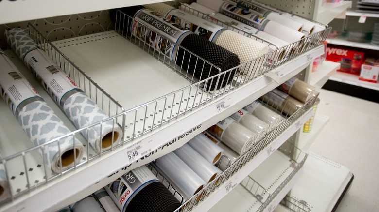 Shelf and drawer liners come in all sizes, and specialized versions are made specifically for your refrigerator and freezer. These features both protect your shelves from spills and make clean-up easier. They're easily removable and replaceable when ruined, taking the brunt of a spill for your wooden cabinets or glass shelving by soaking up most of the mess. These liners also serve an organizational benefit — the texture of the liner clings to objects and keeps them from sliding around and moving. This helps items stay in their designated spots in your drawers and keeps lighter objects from toppling over. They typically come in large rolls of patterned, clear, or solid-colored material, which can be cut to fit any cabinet or shelf properly.