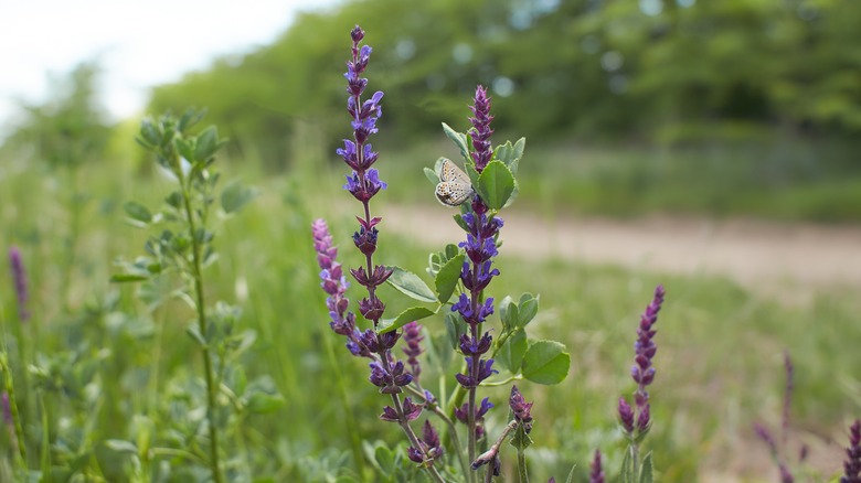Meadow sage (Salvia nemorosa) blooms in the summer bringing out a range of animals and insects that enjoy the pollen it produces as well as the taste of its flowers and foliage. Most often, meadow sage attracts butterflies and bees, and the presence of pollinators also brings the carnivorous dragonflies searching for a meal.