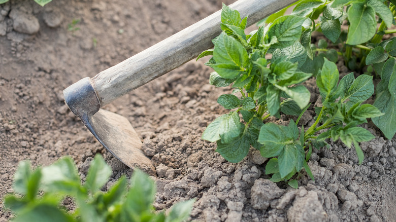 What's a forlorn gardener to do with all their compact soil this spring? While turning your soil can cause more harm than good, it's okay to lightly scrape the top inch or so. Use a long-handled hoe to spare your back and avoid applying too much pressure. As weed seeds appear on the surface of your garden, you can lightly hoe them away and pluck any baby sprouts. Diligence is key here; try to scrape a few times a week if you can. Because the seeds won't have time to burrow into the soil, the hot sun should help to dry them out and kill them.