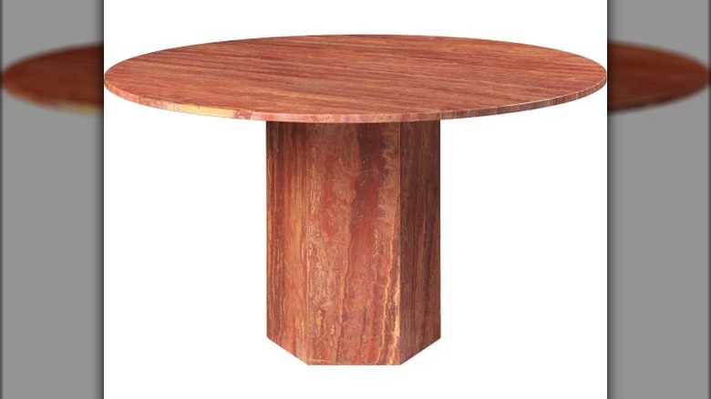 The red travertine dining table from Lekker Home may be just what you need if your dining room is currently lacking color. The warm, red pigment is a vibrant and exciting hue that can be turned into a beautiful focal point. It's currently priced at $8,000.