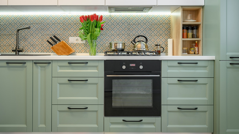 Modern kitchens aren't the first to utilize green cabinetry. Most kitchens that employ this trend tend to have a vintage feel, and this is due to the origin of the design. Green cabinets were most popular in the late 1920s and into the '30s, especially in bungalow-style homes. However, this doesn't mean it's exclusive to retro-inspired kitchens — green can add a pop of color to a sleek and minimalist kitchen, warm up Scandinavian design, and so on.