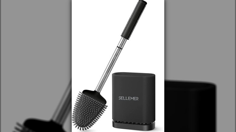 There's nothing more icky than cleaning your toilet bowl only to find that part of the mess has nestled its way into the bristles of your brush. To eliminate this problem, use a non-plastic, Silicone Toilet Brush instead. They are much easier to spray down and sanitize than traditional brushes, which use plastic bristles. You may also find that the silicone brush head is better at slipping under the rim of the toilet, leading to a cleaner toilet. It's currently available for about $10.
