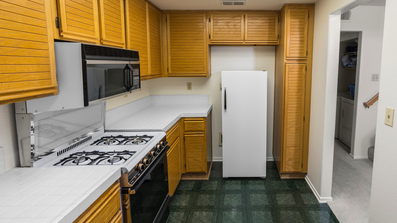 While oak cabinets were a staple in the '90s, don't worry if you still have them. Their innate durability and resistance to water, insects, and fungi make them a popular wood type for kitchen cabinets. You can stain them to maintain the original look, but it won't do much in switching up your kitchen style. Alternatively, painting them will give your cabinets an entirely new look, and your kitchen, a new palette. However, as said, to usher your kitchen into the modern era, it's best to avoid painting oak cabinets with certain colors. You'll also need to thoroughly prep and sand the cabinetry to reduce its grain from peeking through the paint.
