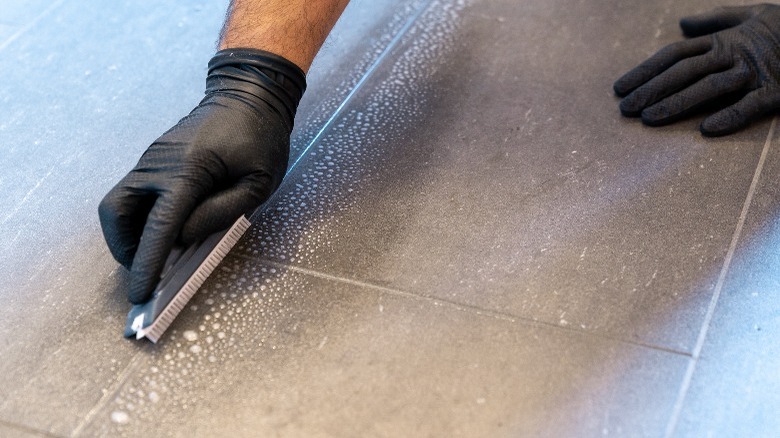 A freshly cleaned tile floor won't look that way for too long when the grout is stained and dirty. Grout is usually made from sand, which is porous. If its seal has worn off, that allows food, liquids, and debris to penetrate and cause stains. The dirt stays lodged in the joint and comes out when agitated by footsteps or paws. That's why your kitchen floor feels dirty after a few days, even though you just cleaned it.