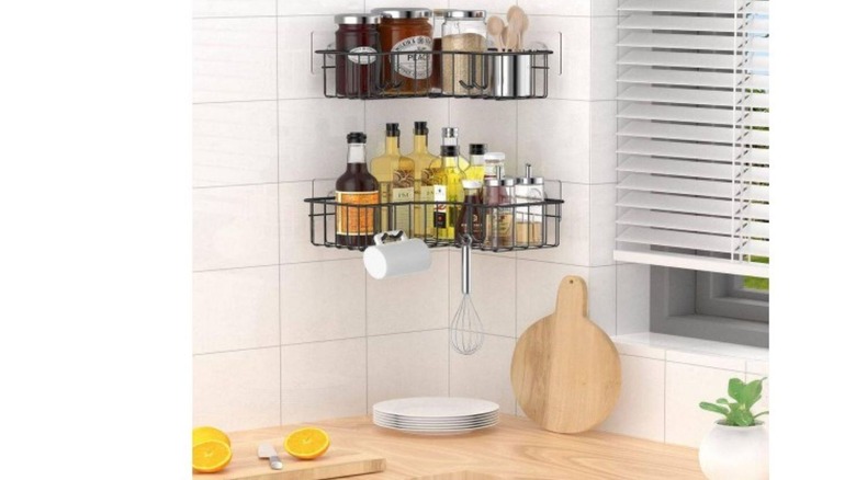 Organization in the kitchen provides a convenient workspace that we can utilize more efficiently during a meal prep. One way to keep ingredients or tools within close reach is to use a hanging shower caddy or a caddy with shelves that fit in a corner, anchored into a space by a tension rod. Hand-held caddies also come in handy for storage and keeping things out of the way, considering their compact sizes that can fit in a small space.