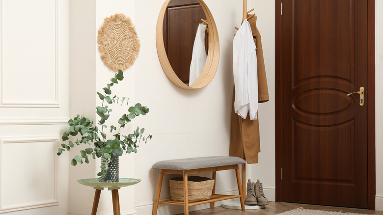 Seating has other advantages, too. Waiting on your spouse to get their things together before you go out the door? Take a seat and check your phone for emails before you head out. If you're juggling groceries as you enter the home, having a place to set them down that isn't the dirty floor can really help with getting everything inside without a hassle. If you're throwing a party and run out of closet or hook space, having a place for guests to lay their coats that isn't your bedroom or the back of a couch is a huge plus. Without somewhere to sit, your foyer may as well be a breezeway.