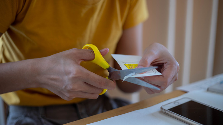 While slicing through some aluminum foil can help improve how well your scissors cut, there are other easy methods that actually sharpen dull blades, no rotary tool required. One option is cutting through a sheet of fine sandpaper a few times, which actually helps to sharpen the blades. You can also try cutting through steel wool, the fine, metal scrubbing pad that's available at most grocery stores.