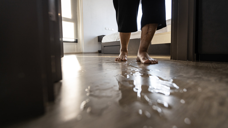 Laminate flooring water damage typically occurs as water moves into the gaps between pieces of flooring before penetrating the layers of thin, pressed wood board that make up the flooring. This design means it's not possible to create a type of laminate flooring that is completely waterproof or water resistant, so using laminate flooring in an area where it could experience excessive water damage, like in a bathroom, is generally a poor idea. This type of flooring is not a long-lasting option in areas with significant moisture, as the different layers inside the planks can pull apart when they swell after absorbing water, making the flooring buckle or warp.