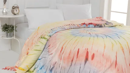 Tie-dye has its origins in ancient fabric-dying principles across the world, seen in various Japanese, Indonesian, and Peruvian traditions, to name a few. But this funky, organic dying method became popular in the 1960s and '70s in the U.S., almost becoming synonymous with the hippie movement, and it continues to have a consistent resurgence in American fashion and home décor. And right now, it's having a moment not just on a t-shirt but as a part of bedding. While you can buy pre-dyed sheets, it lacks the ability to really customize them according to your palette, and tie-dying is a fun method to experiment with. Luckily, it isn't too hard to create your own tie-dyed bed sheets at home.