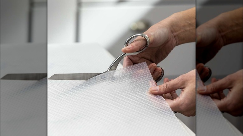 For many of us, our dogs and other pets are beloved members of the family. We take them to the doctor, get them outfitted in booties and raincoats, and invest in high-quality dog food to ensure their health and longevity. Breakfast and dinner time for dogs can be a raucous few minutes in the kitchen — there's growling, tail wagging, speed eating contests, and then a pleading look as if you hadn't just fed them. Your dog's enthusiastic chomping can slide their bowls several inches (or feet?) across the slippery surface of the kitchen floor. While amusing, over time it will scratch up your floors. A great, simple trick you can use is to protect your floors with a non-slip shelf liner.