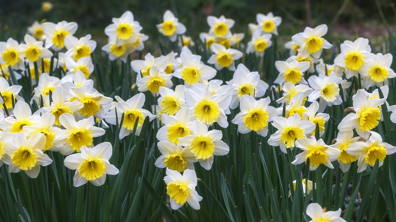 Bright daffodils have similar vibrant blossoms to tulips. With sunlight, water, and rich soil, you'll see their crowns in no time. Plus, different varieties will thrive in any hardiness zone. Daffodils like full sun and well-drained soil to thrive because, like several other plants on this list, too much water can lead to rot. Watering once a week will suffice. You want to plant these beauties when the soil is roughly 60 degrees Fahrenheit, or sometime between September and November. If ingested, this flower is poisonous, so be cautious.