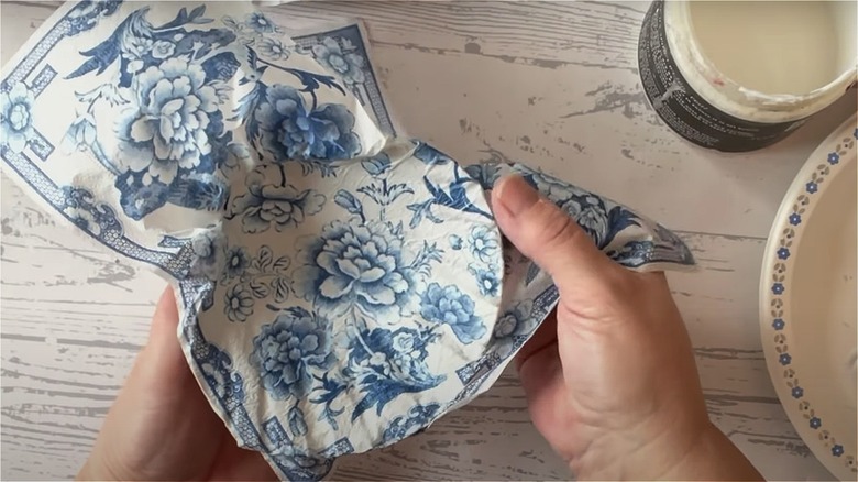 To craft your table dish seashells, apply a thin layer of glue inside your shell with a small brush. Next, separate the two layers of the napkin, as you should only apply the decorative part. You can then cover the inside of your shell with your napkin with the pattern facing you. Gently press it down with a brush before adding another thin layer of glue and cutting the edges off with scissors. You can also apply some glue around the edges. Now, all you have to do is allow it to dry overnight. Once it's dry, you can go in and outline your DIY shell dish with your golden pen or paint. Make sure to be patient and take your time with this part, as it will be difficult to remove if you make a mistake and you'll likely have to restart. As a result, you should be left with a cute seashell table dish.