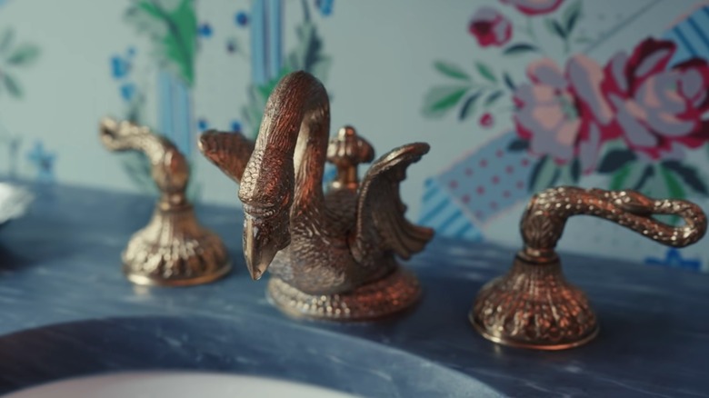 If you're thinking of renovating your bathroom, put aside the sleek silver and chrome fixtures for just a moment and look to something a little bolder. Undeniably ostentatious, the swan faucet is making a comeback. Exactly as it sounds, a swan faucet is a faucet shaped like the bird in question, usually complete with accurate feathered detail and a long, winding neck. If you want an example of a swan faucet, look no further than the tour of David Harbour and Lily Allen's Brooklyn townhouse by Architectural Digest, in which Harbour says that he "demanded" swan taps as part of his design input.