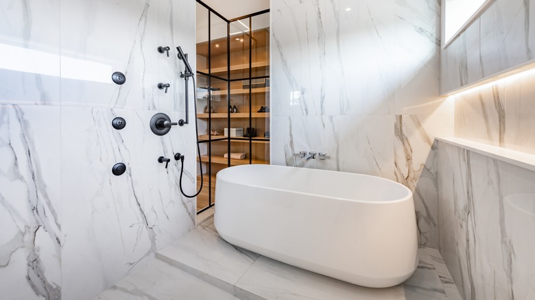 In a home with multiple bathrooms, having a tub set up in one of them can be a huge selling point, even if smaller bathrooms only feature a walk-in shower. Larger bathrooms and larger homes may be able to accommodate a separate walk-in wet room with enough room for both a tub and shower or room enough for both a walk-in shower and a separate tub in a single bathroom.