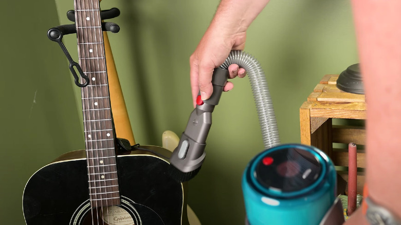 According to Onedesk, over 40 million vacuums fly off shelves and into our shopping baskets annually, proving just how popular they are when it comes to cleaning. While vacuuming can be easy when working with floors, tighter nooks and crannies can be a hassle, especially if you have to reach quite far. However, there is one vacuum accessory that could change the way you clean for good. Say hello to Dyson's flexible extension hose! This dreamy attachment will work wonders if you're the proud owner of a Dyson vacuum and will allow you to reach further than ever before. For example, you may be able to clean around your ceiling fan, on shelves, on your stairs, and down any other cracks and crevices alike.