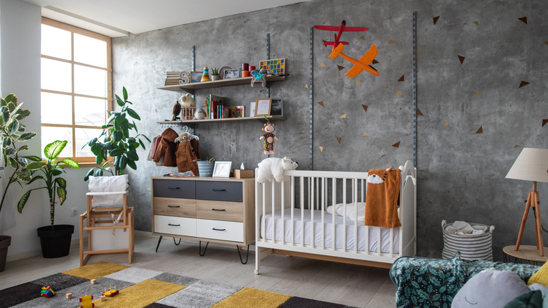 To find a way to balance out the theme and decor between you and your partner, find areas to compromise. The room's color is a great place to start as Hall did with her clients. Consider painting the nursery a color associated with your theme with one wall as the accent instead of installing wallpaper focused on it.
